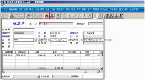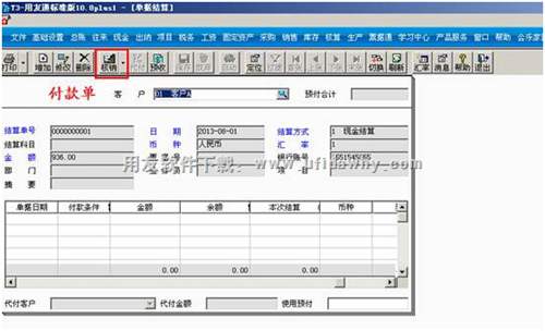 (7)填制的一張紅字的收款單在軟件中要進行核銷(點擊“核銷”-輸入本次結算的金額-“保存”)