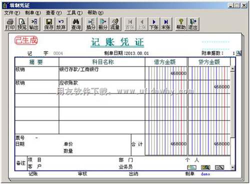 b)、核銷制單(點擊“核算管理”-“客戶往來制單”-選擇“發(fā)票制單”-點擊“確定”)
