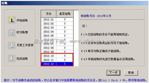 3、登錄用友T3軟件,將2012年10月、11月、12月直接結(jié)賬,如下圖所示: