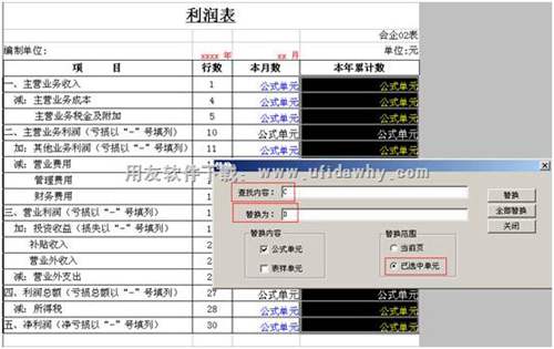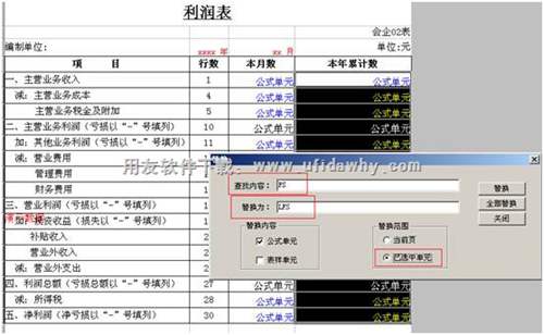 選中本年累計數(shù)下面的公式單元,點擊“編輯”—“替換”,查找內(nèi)容輸入FS,替換為輸入LFS,替換范圍選擇“已選中單元”,點擊“全部替換”。