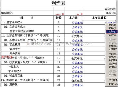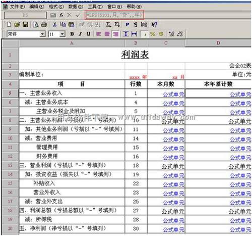 4、重新打開報表,點擊“文件”—“新建”,選擇新會計制度行業(yè),選擇利潤表,打開,發(fā)現(xiàn)本年累計數(shù)下的公式單元已是修改后的公式單元。