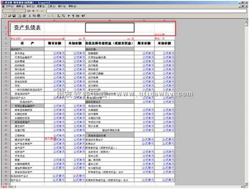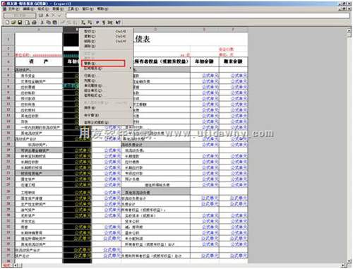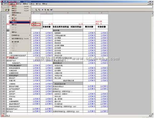 (1)打開用友T3財(cái)務(wù)軟件的財(cái)務(wù)報(bào)表模塊,在報(bào)表“格式”狀態(tài)下,選擇第一行,右鍵選擇“組合單元”-“取消組合”: