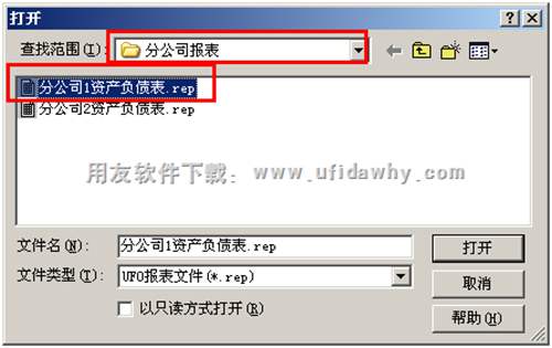 (2)在財(cái)務(wù)報(bào)表模塊,點(diǎn)擊“文件”-“打開”,在相應(yīng)路徑下選擇“分公司1資產(chǎn)負(fù)債表”: