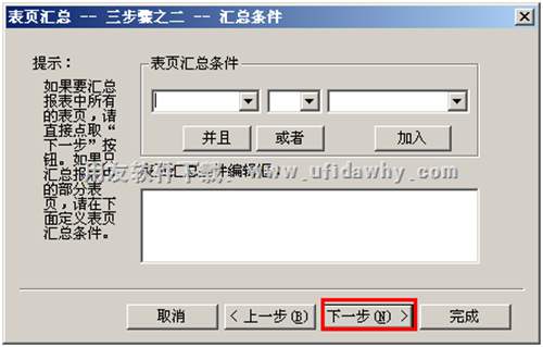 c、可以輸入?yún)R總條件,如果需要整張表頁進(jìn)行匯總直接點(diǎn)擊下一步: