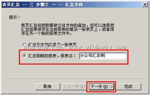 b、選擇“匯總到新的報(bào)表,報(bào)表名:分公司匯總表”: