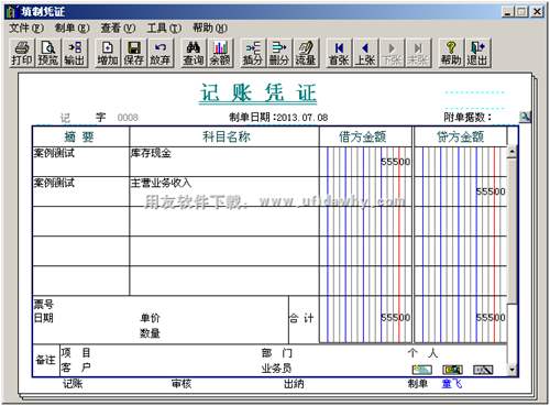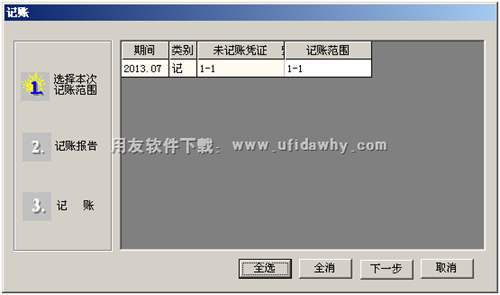 2、 進入總賬系統(tǒng),點擊“填制憑證”,做一張2013年7月的憑證并進行記賬: