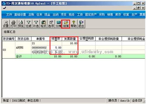 (3)在用友通T3軟件中直接進行結(jié)算。