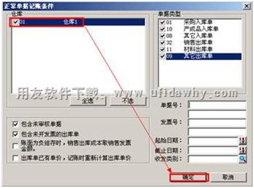 a.在核算模塊點擊“正常單據(jù)記賬”選擇倉庫后點擊“確定,選中要記賬的單據(jù)再點擊“記賬”。