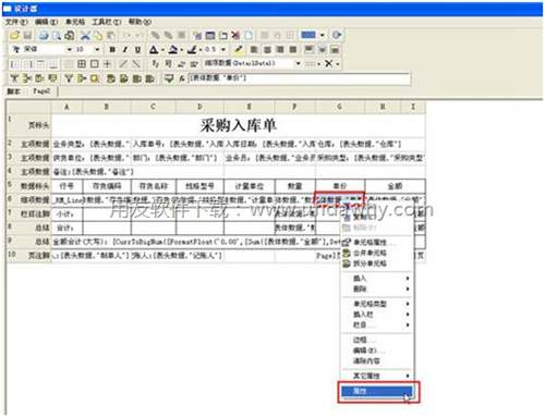 5、在頁(yè)簽“1”中右擊上一步粘貼好的“采購(gòu)入庫(kù)單”-“設(shè)計(jì)”