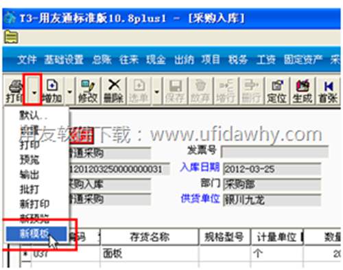 2、點(diǎn)“打印”右邊的小倒三角標(biāo)志-“新模板”