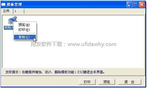 3、在頁(yè)簽“公共”中右擊“采購(gòu)入庫(kù)單”-“復(fù)制”