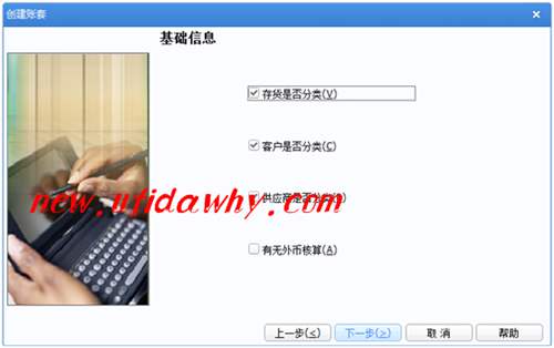 3.建立帳套,在填寫(xiě)帳套信息的時(shí)候要注意帳套的啟用會(huì)計(jì)期。然后填寫(xiě)公司的企業(yè)類(lèi)型和行業(yè)性質(zhì),以及基礎(chǔ)信息的填寫(xiě)。