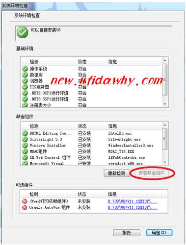 5.檢測(cè)環(huán)境,檢測(cè)完后,若是缺少組件,就點(diǎn)擊安裝缺省組件。