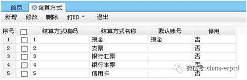 點(diǎn)擊“基礎(chǔ)設(shè)置”— “收付結(jié)算設(shè)置”— “結(jié)算方式”,系統(tǒng)預(yù)置了一些常見的結(jié)算方式,如果要增加結(jié)算方式,點(diǎn)擊增加按鈕就可