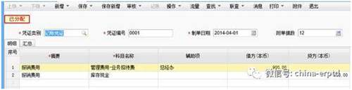 如下圖,選擇憑證類別,輸入制單日期,附單據(jù)數(shù),然后輸入分錄信息,最后點(diǎn)擊【保存】按鈕,如果是現(xiàn)金流相關(guān)憑證,會(huì)自動(dòng)分配流量,且憑證上顯示【已分配】