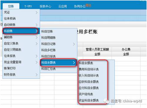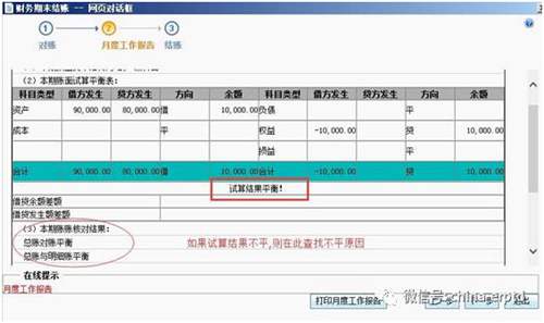 提示試算結(jié)果平衡,則可以正常結(jié)賬,如顯示不平,則到下拉菜單是查找不平原因,