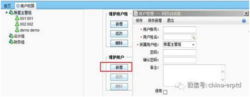 登錄進(jìn)來(lái)后,先建立相應(yīng)的系統(tǒng)操作員,點(diǎn)擊“系統(tǒng)管理”下拉菜單中的“用戶權(quán)限”,只有財(cái)務(wù)應(yīng)用,建議可以把其他操作員也設(shè)為【賬套主管組】,輸入相應(yīng)對(duì)用戶賬號(hào)、姓名及密碼即可,