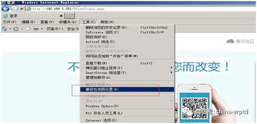 如果遇到登錄界面別扭的時(shí)候,請(qǐng)?jiān)贗E中設(shè)置兼容性視圖,推薦IE8/IE9 (x86)