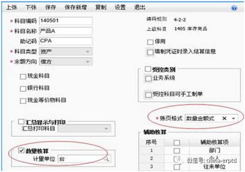 B、數(shù)量核算科目(要提前設(shè)置計(jì)量單位信息)