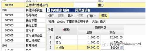 綠色行:輔助科目,雙擊錄入輔助明細(xì)例:外幣核算期初錄入在外幣科目行雙擊,彈出輔助核算期初界面,錄入期初明細(xì),然后保存即可外幣明細(xì):