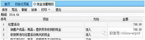點(diǎn)擊“系統(tǒng)管理”—“初始化”—“現(xiàn)金流量期初” 錄入各現(xiàn)金流項(xiàng)目的期初金額即可