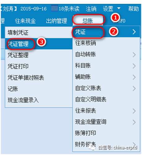 點(diǎn)擊“總賬”—“憑證”—“憑證管理”,選擇過濾條件后確定